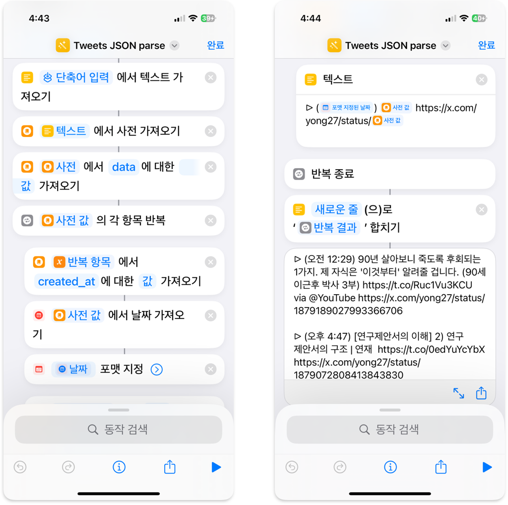 이 코드를 보면 어떻게 동작하는지 이해가 갈 것이다. 그럼 이제 이걸 아이폰 단축어로 구현해보자.
