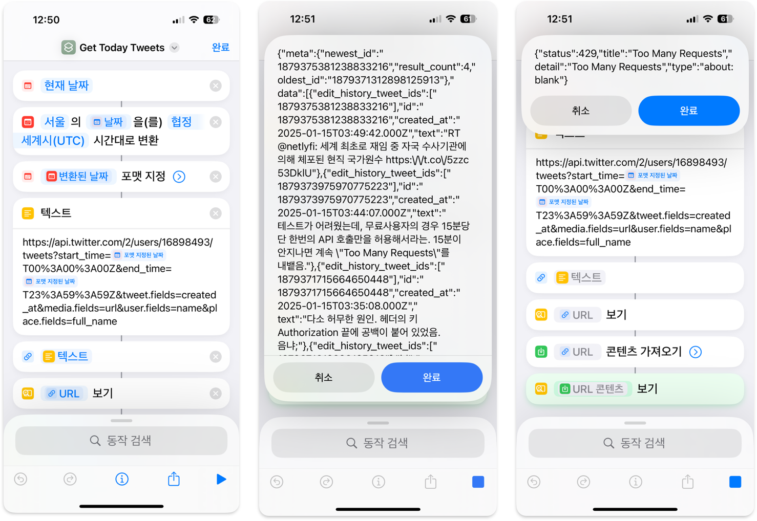 X API v2로 오늘의 내 트윗들을 가져오는 아이폰 단축어