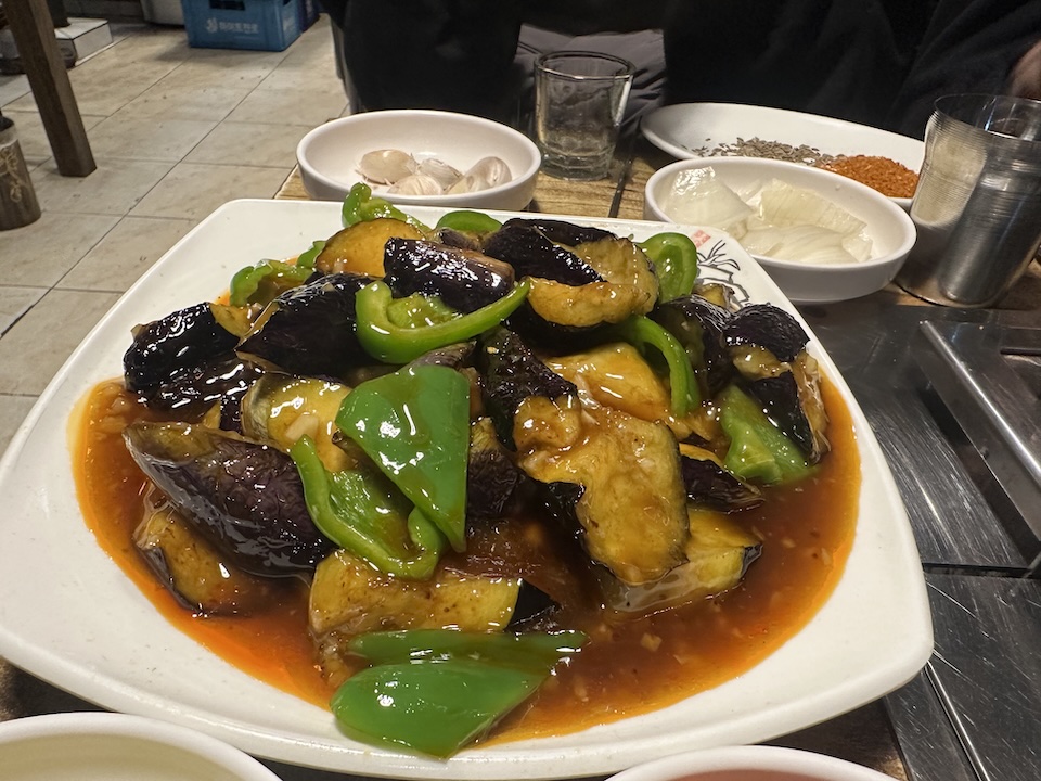 양꼬치가 익어가는 사이 기다렸던 가지볶음이 나왔다.