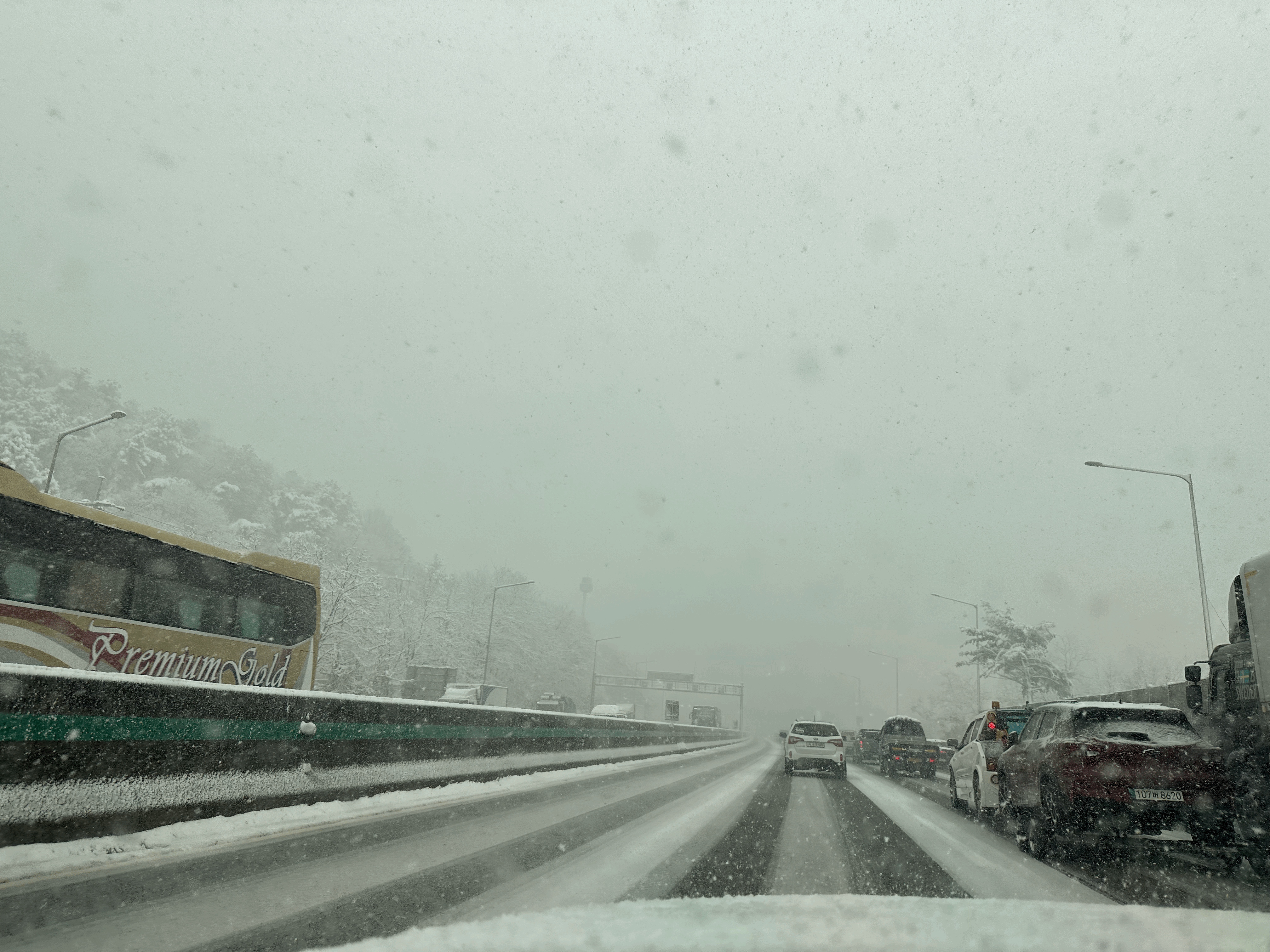 다행이도 무한루프를 벗어나고, 사고도 없이 집에 도착했다. 나야 잘 왔는데,... 아직 길 위에 있을 동료들, 그리고 많은 사람들이 걱정된다. 간만의 첫눈인데, 좋은 기억들만 있기를!
