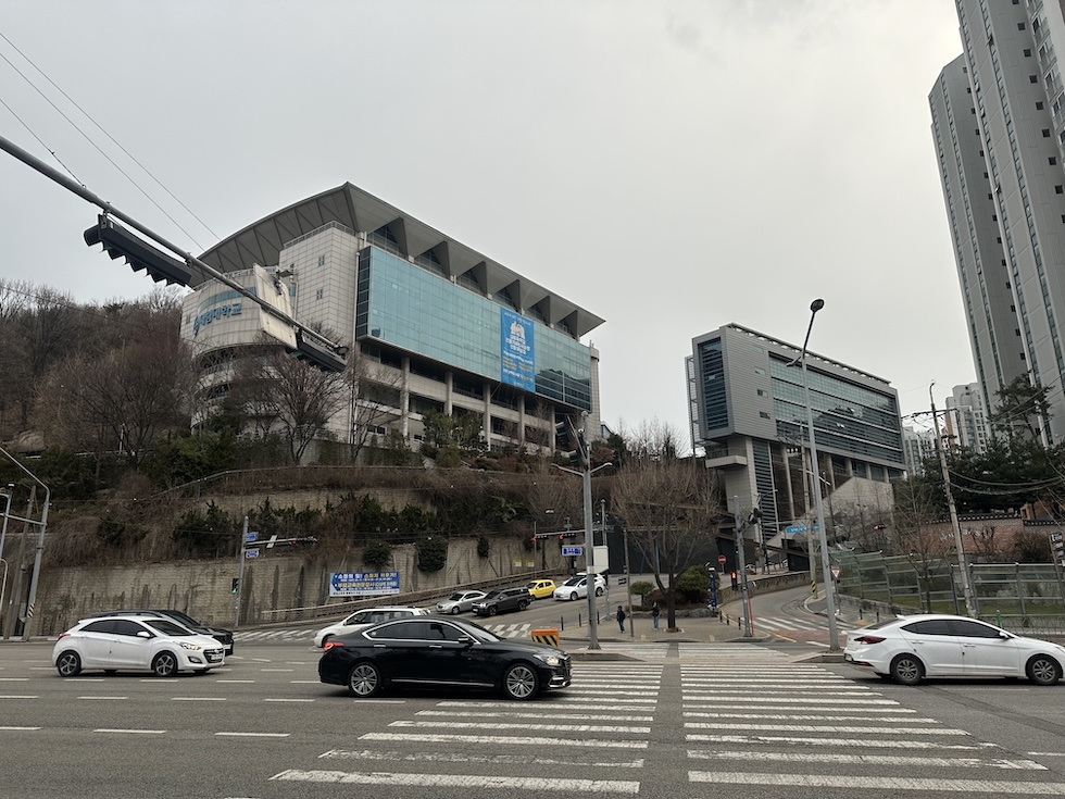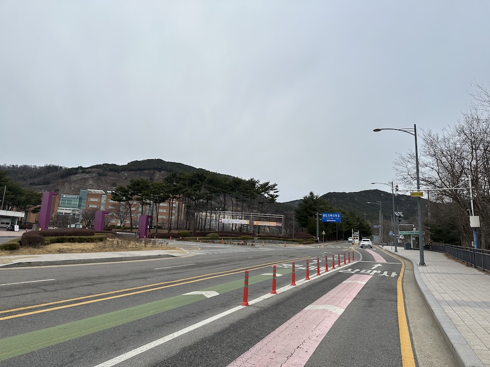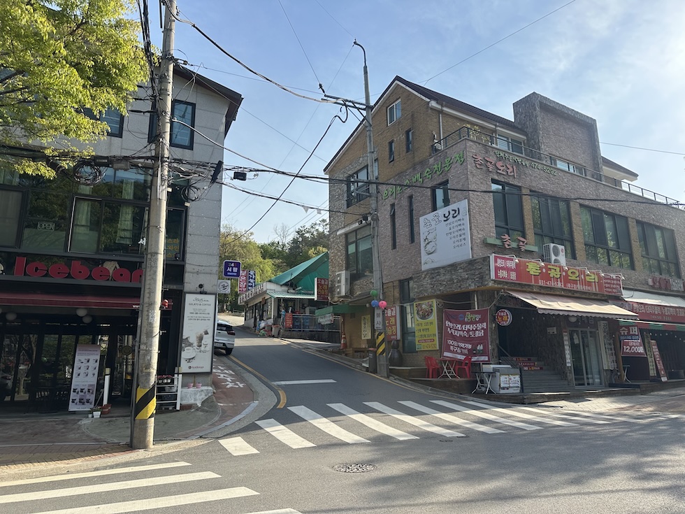 신호등 앞에서면, 바로 앞에 대림대학교 건물이 보인다. 건물 앞 오르막길로 올라가면 된다.