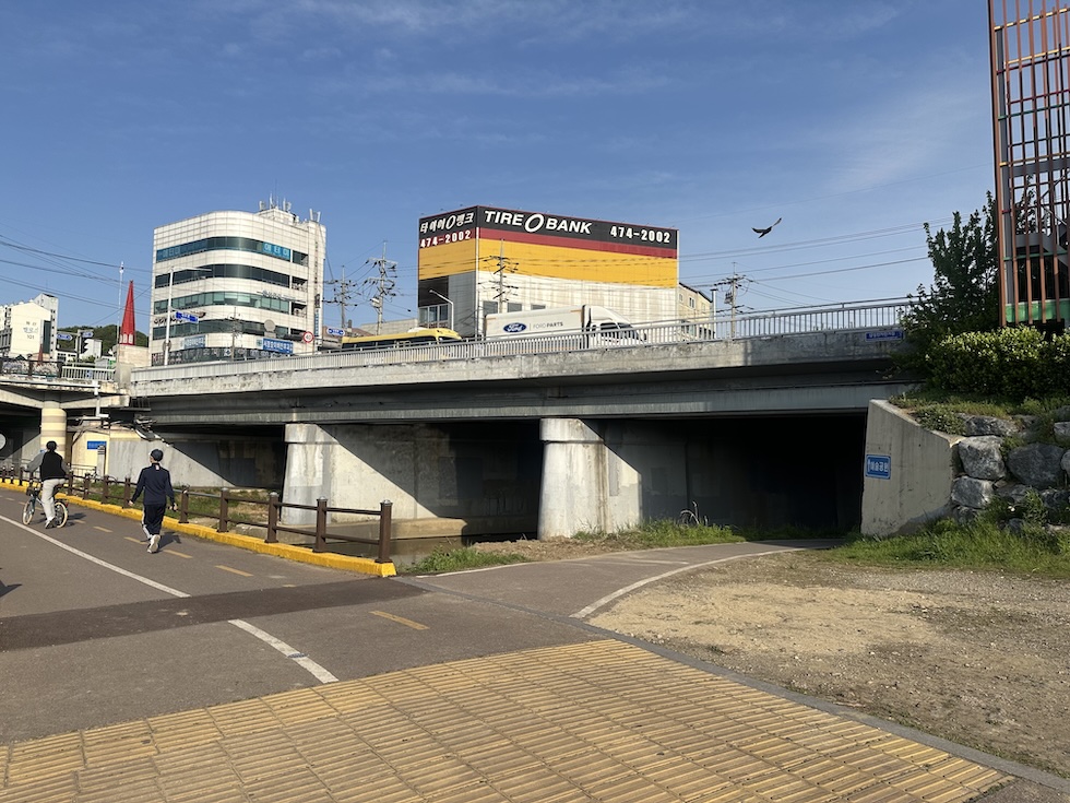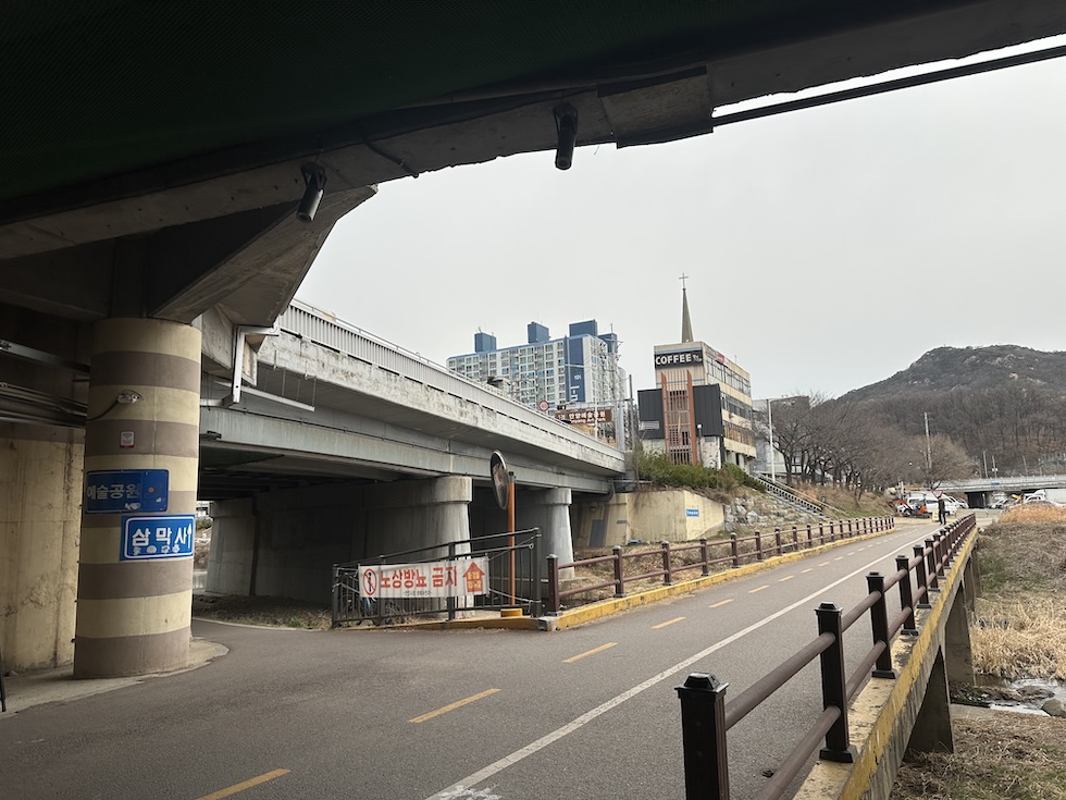 안양천 자전거도로 서울 -> 쌍개울 방향으로 주행 중, 비산동 대림대학교에서 1번국도쪽으로 올라간다.