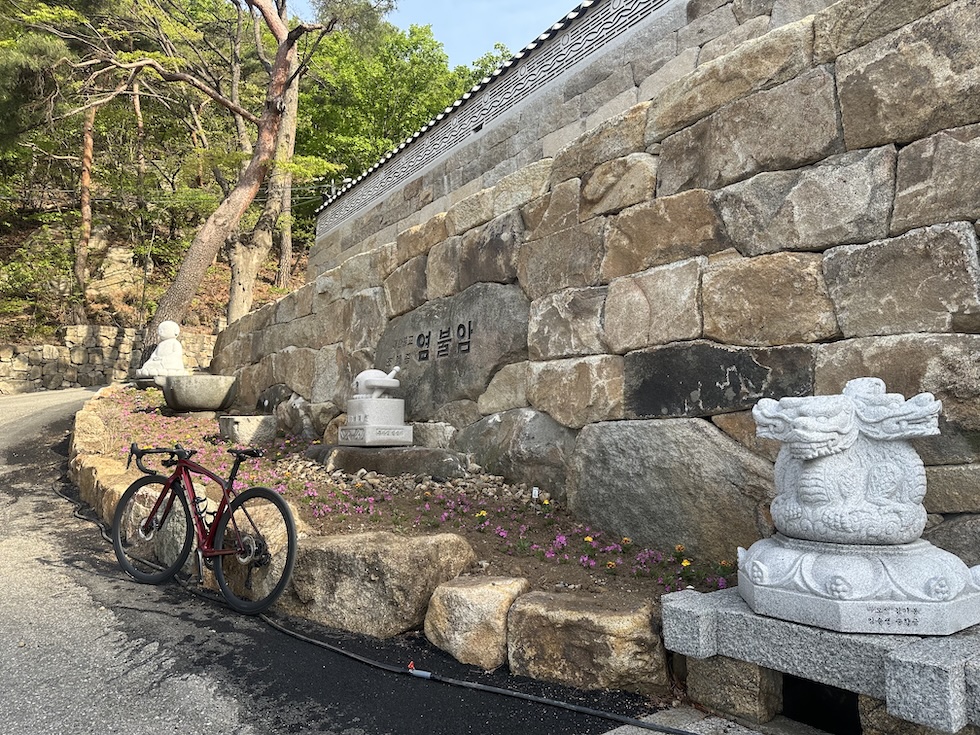 전에는 염불암이였는데, 염불사로 바뀌였다고. 길이 1.2km, 표고차 162m, 평균 경사도 13.6%의 염불사 업힐 도전!