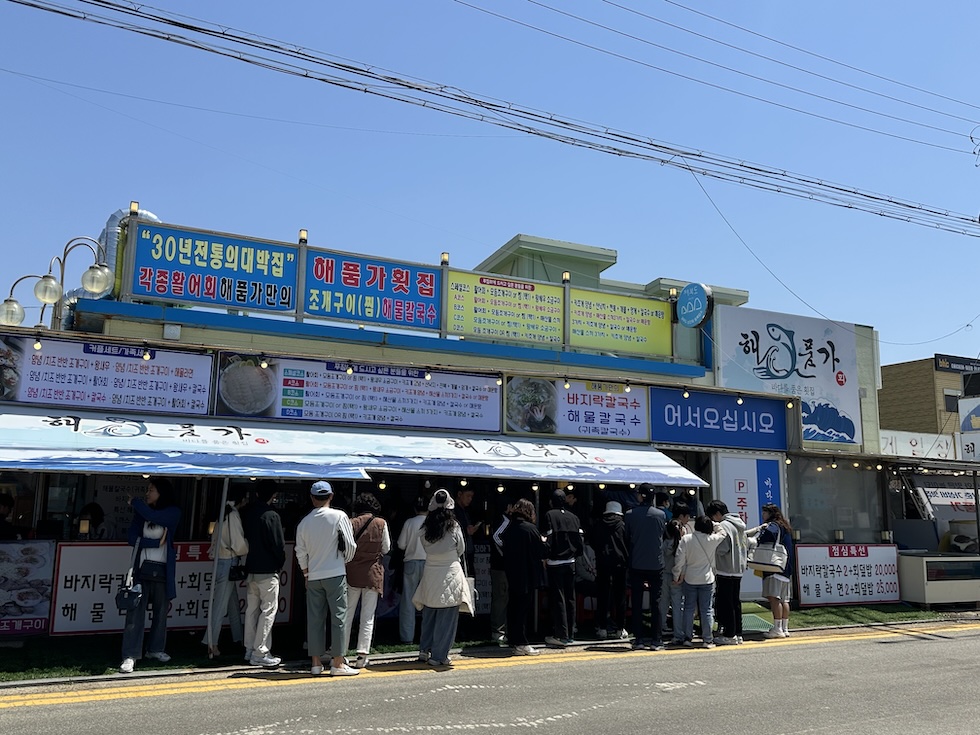 어제 저녁 먹었던 해품가 앞에 지나간다. 여긴 뭐, 점심에도 웨이팅이 꽤 길다. 다른 조개구이집들이 안타깝게 느껴지네.